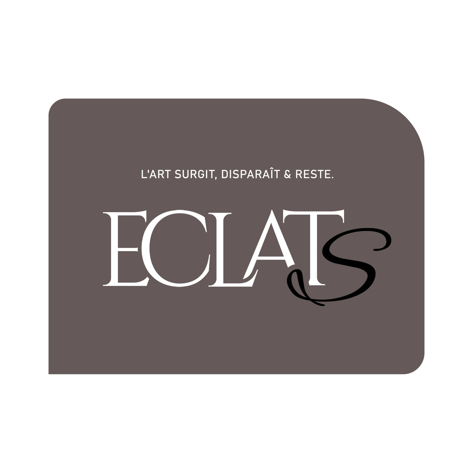 La charte graphique d'ECLAT S définit les règles d'usage de l'identité visuelle de la plateforme. Elle garantit la cohérence et la reconnaissance de la marque sur tous les supports numériques et imprimés. L'identité repose sur la tension entre le monument (Cinzel, architecture romaine) et le geste vivant (Alex Brush, signature manuscrite) — exactement comme l'art lui-même.